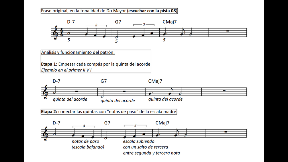 - El ejercicio “improvisa conmigo” para improvisar libremente sin perderse en 7 tipos de II-V-I diferentes.