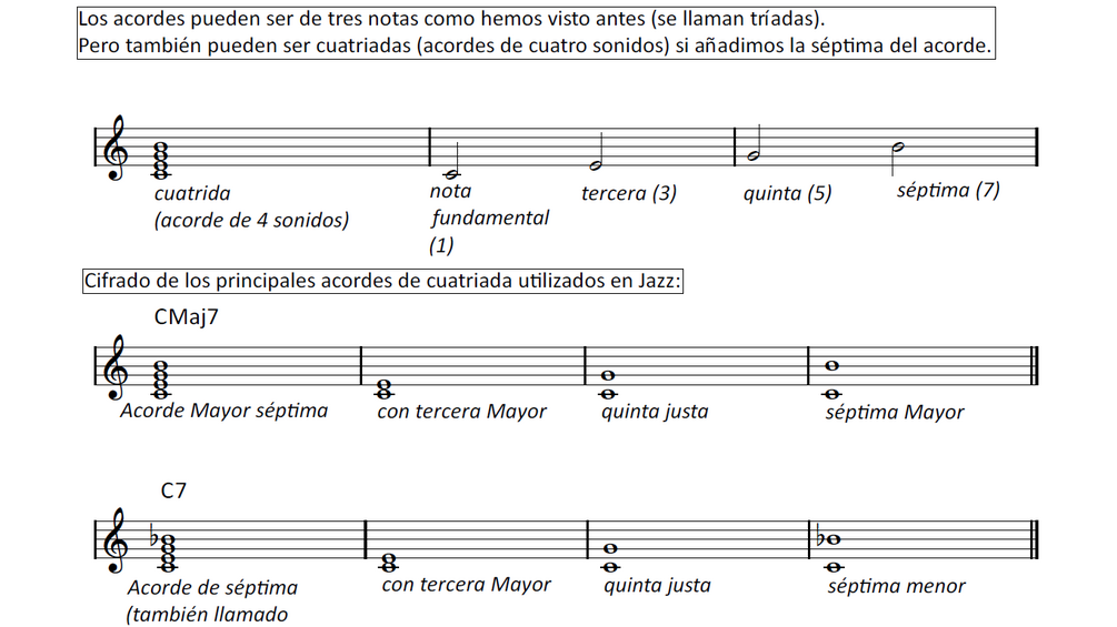 - La teoría mínima indispensable:escala madre, grados de la escala mayor y menor, notas guía, acordes básicos y alterados, el cifrado anglosajón, tonalidades más comunes y substitución tritónica..