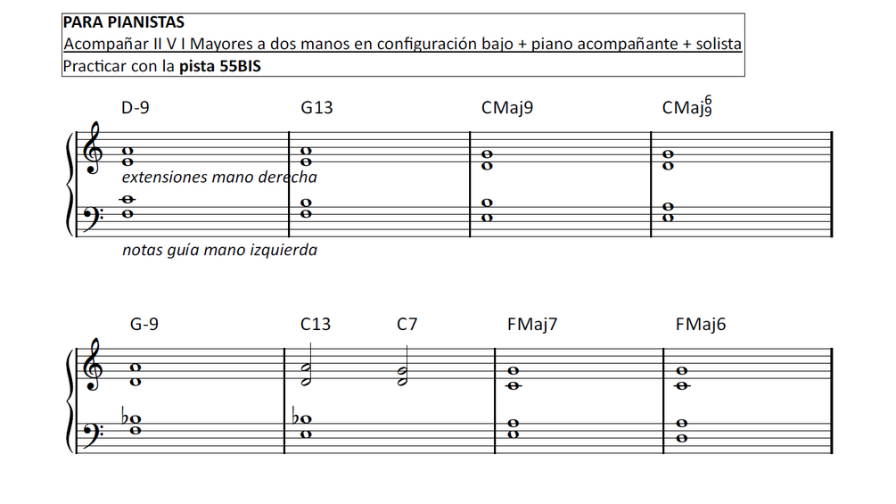 - El ejercicio “improvisa conmigo” para improvisar libremente sin perderse en 7 tipos de II-V-I diferentes.